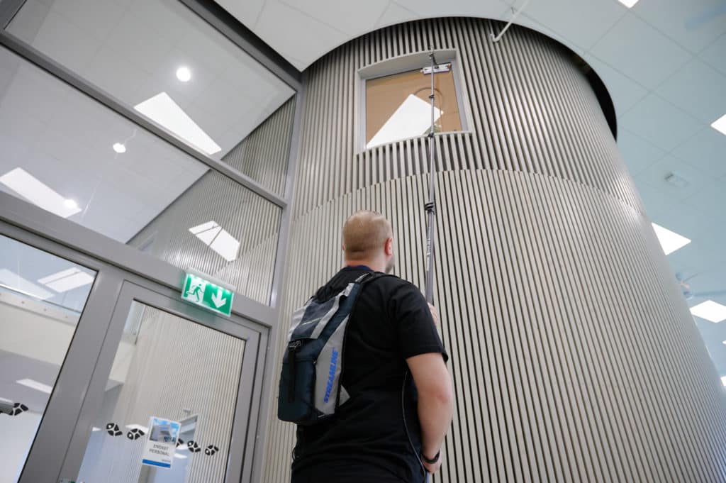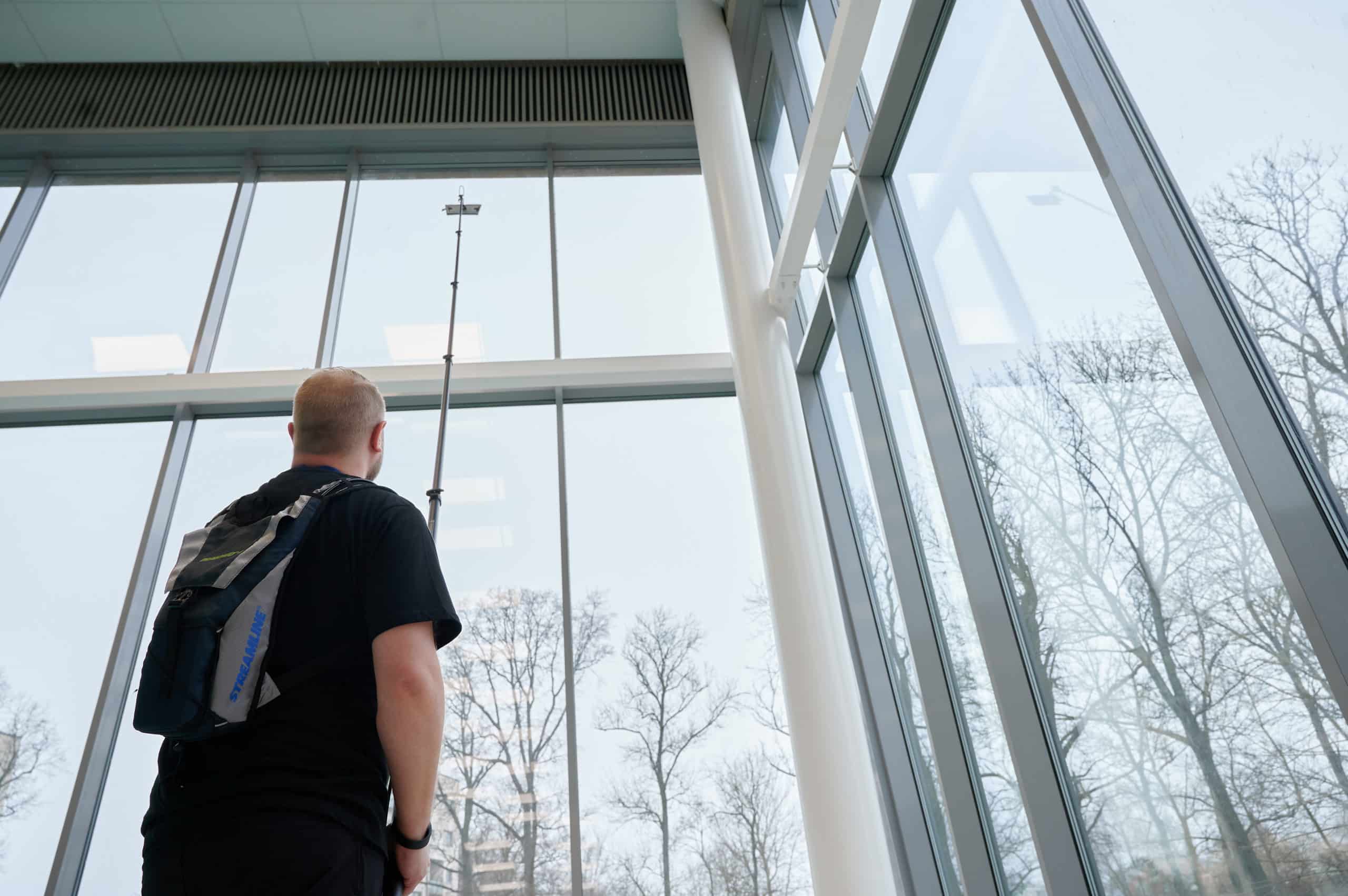 Dragonfly Inomhus Kit är för rengöring av svårnådda ytor inomhus där man normaltvis behöver stege kan du rengöra glaspartier upp till 18,3 m med Ultrarent vatten.